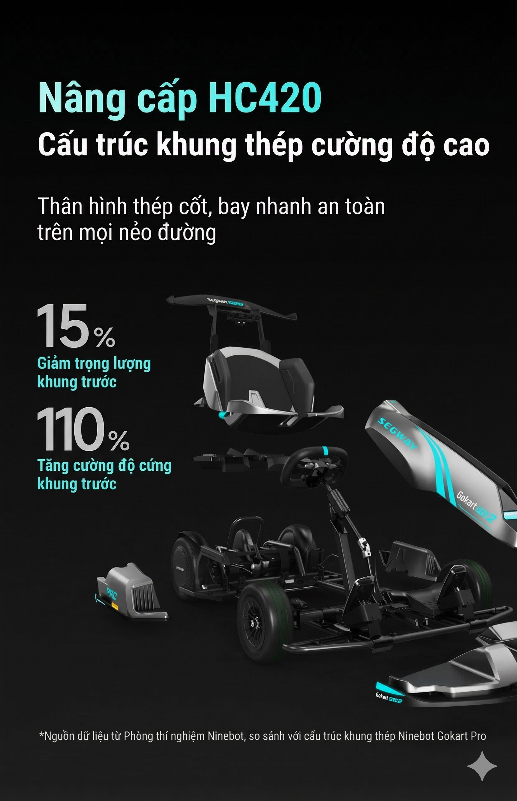 Xe điện kart Homesheel Ninebot 11 Pro 4 bánh cao cấp, tốc độ mạnh, thiết kế thể thao, trải nghiệm đua xe an toàn